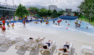 숲으로 둘러싸인 산림욕장과 4백 82평 규모의 실내 바데풀, 6백 96평 규모의 야외 온천풀 등 대규모 시설을 갖춘 온천 리조트로 물놀이와 수치료를 함께 즐길 수 있다.