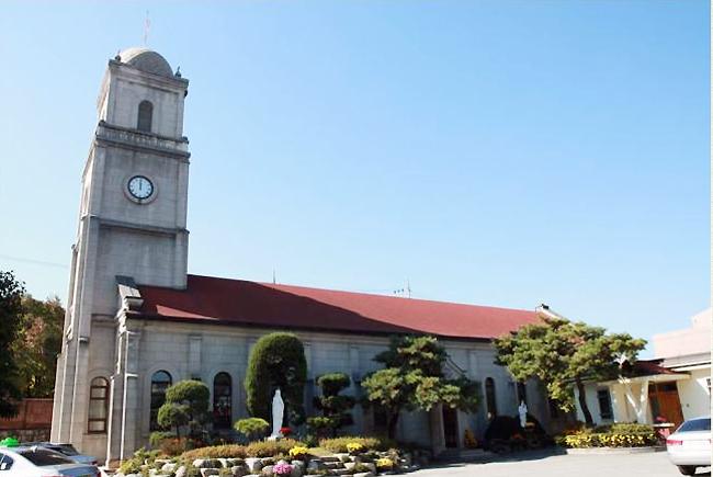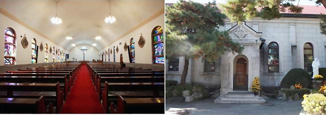 입구에 들어서면 정면으로 둥근 돔이 올라앉은 종탑이 보이고, 옆으로 길게 뻗은 ‘ㄴ’자 건물이 보인다.