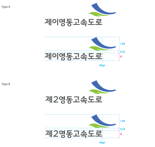 제이영동고속도로의 심볼마크는 상승하는 라인을 통해 도로 정체 해소와 수도권과 연결하는 가교의 역할을 표현하며, 지역균형발전과 각종 환경개선 효과를 나뭇잎으로 상징하여 자연을 생각하고 교통 이용객의 편익을 향상 시키는 기업철학을 의미합니다.